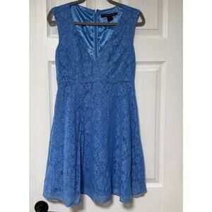 French Connection Women's Blue Lace V-Neck Sleeveless Dress Size 4