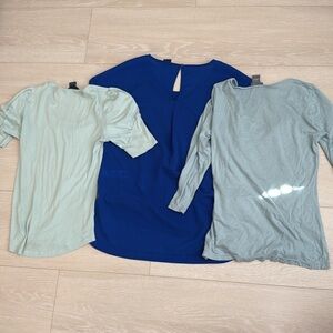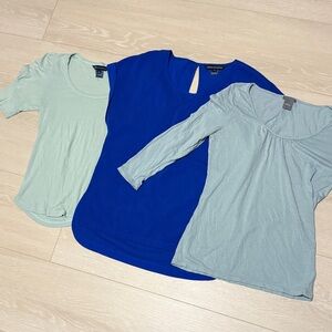 Stylish tops in bold blue and soft mint. Ideal for any occasion.