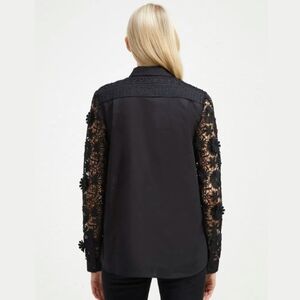 NWT: {French Connection} Women's Eadu Lace Long Sleeve Panelled Shirt - Size Small