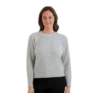 Make a lasting impression with this chic embellished sweater from French Connection. Adorned with exquisite pearl embellishments, this sweater features a crew neck and long sleeves, creating a timelessly elegant ensemble. Whether paired with our satin skirt, jeans, or high-waisted trousers, this sweater promises an effortless, yet glamorous look. Perfect for the holidays or any special occasion, the pearlized embellishments add beautifully polished detail to this soft and cozy garment, making it a standout piece in your wardrobe.