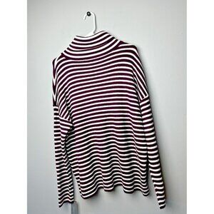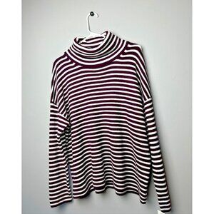 French Connection Women's Evening Wine & White Turtleneck Striped Sweater Size M