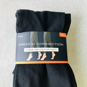 French Connection Womens Fleece Lined Black Footless Tights 2 Pk, Size M/L