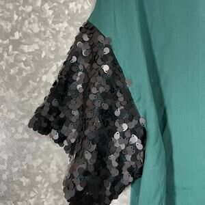 French Connection Women's Green Sequin Sleeve Crop Top - Size Large Petite (PL)