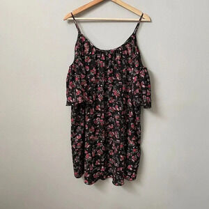 French Connection Women's Medium Cold Shoulder Floral Mini Slip Dress Black Red