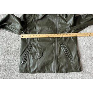 French Connection Womens Olive Green Faux Leather Moto Biker Jacket Size S