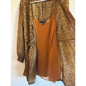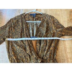 French Connection Women's Orange Brown Snakeskin Wrap Blouse Long Sleeve Chiffon