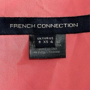 This French Connection dress is a women's size 4, featuring a square neck and ruffle style. It is short in length and comes in a pink color, suitable for the fall season. Made from a blend of polyester, viscose, and elastane, it is machine washable. Manufactured in China, this dress is in excellent pre-owned condition. Keywords: French Connection, size 4, square neck, ruffle dress, pink dress, fall fashion, women's dress, short dress, polyester blend, machine washable.