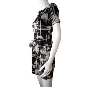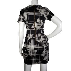 French Connection Women's Size 6 Abstract Print Short Sleeve Cocktail Dress Pockets Stretch Back Zipper