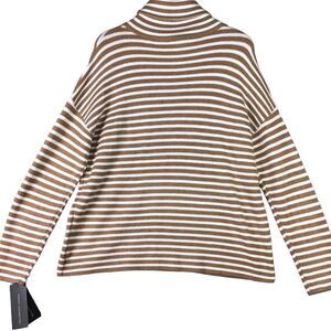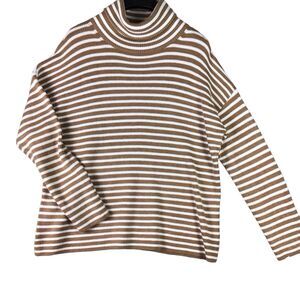 French Connection Womens Small Tan Striped Turtleneck Ribbed Knit Sweater