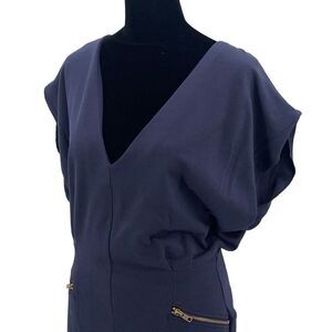 French Connection Womens V neck Exposed Back Zip Sheath Dress Navy Size 10 NWT