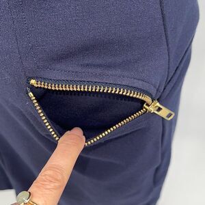 - Front diagonal zippered pockets