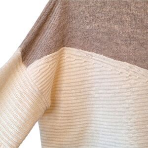 French Connection Wool Blend Neutral Patchwork Funnel Neck Sweater