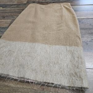 French Connection 100% Wool Tan and Cream Eyelash Colorblock Two-Toned Lined Midi Skirt 10