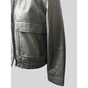 French Connection XL Faux Vegan Leather Bomber Jacket Shearling Collar Black