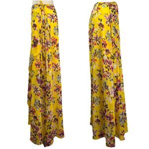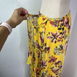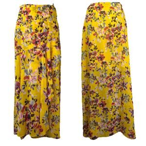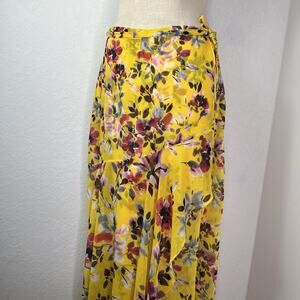 French Connection Yellow Floral Print Maxi True Wrap skirt Size US8, summer