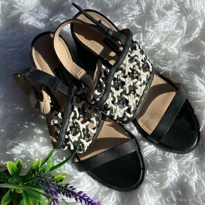 Tags: chunky heels, block heel, black and white heels, summer heels, trendy heels, sling back heels, strappy heels, boho, chic, brunch outfit, brunch heels