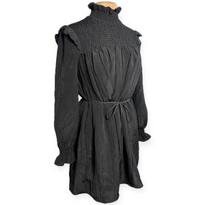 French Connection black boza crinkle dress long sleeve mock neck smocked size S