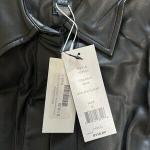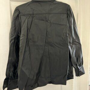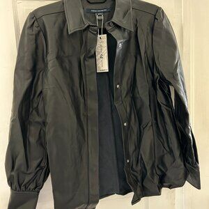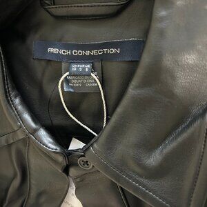 Black French Connection faux leather shirt/jacket with tags attached. US size 6. Wrinkles will likely come out on cold wash cycle, just didn't want to remove the tags. See tag for material information. Love this just no longer my size.