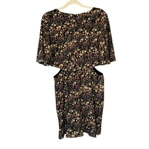 French Connection black multi floral cutout side waist dress with flutter short sleeves. Back zipper closure and lined. Perfect for Fall and Winter! Tags: wedding guest, date night, evening out with the girls, shower. Size 10