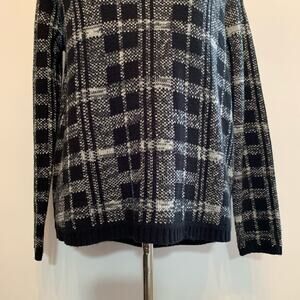 French Connection black white plaid sweater size Medium classic preppy cozy