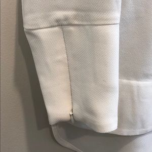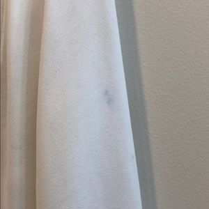 Very flattering, never worn. Slight stain on left sleeve (see 4th photo)
