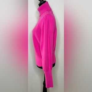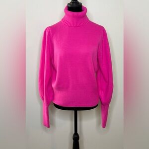 French Connection bubblegum Hot Pink turtleneck sweater balloon sleeves med EUC