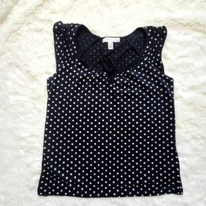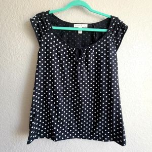 French Connection cap sleeve stretchy black & white polka dots, size medium top