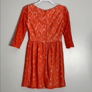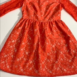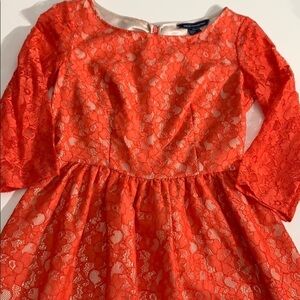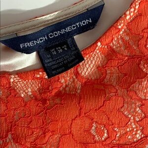 French Connection coral Lace Floral Mini Dress 3/4 tea party a line