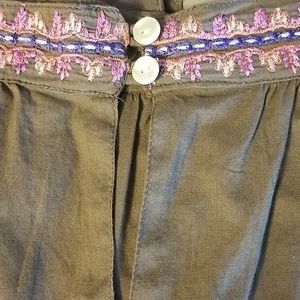 French Connection embroidered brown boho tank top. Empire waist ties to bow on back