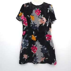 French Connection floral velvet burnout mini dress Size 10 black flutter sleeve