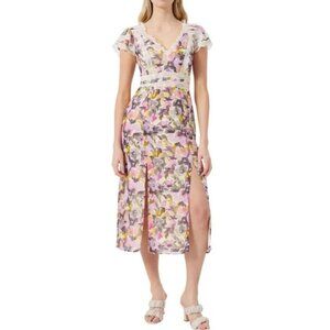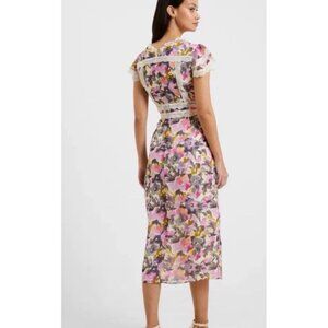 French Connection midi Dress Floral Size 2 Crinkle Lace Dress NWT romantic