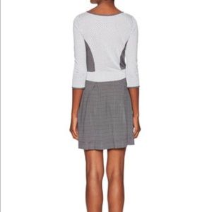 Knit dress, graphic print and colorblocking throughout, crewneck, 3/4 sleeves, pleating at waist, side slip pockets, tonal top stitching, material 100% vicose/rayon, care-machine wash.
