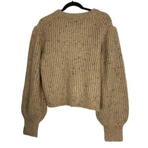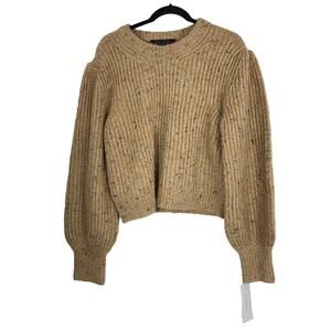 style 78RCM, color: camel multi, wool blend, crew neck, preppy design, balloon sleeve,