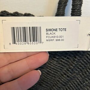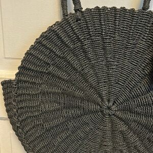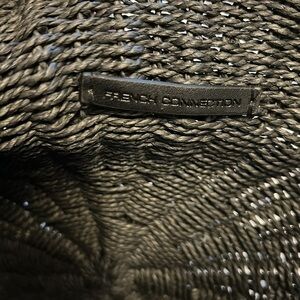 French connection tote is woven black great for summer at the beach.