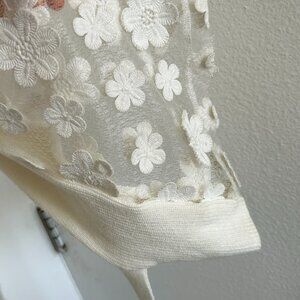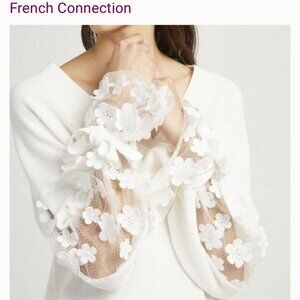 French Connection 100% cotton sweater floral sleeve with ties, very romantic looking and soft. It's a relaxed fit, size XS.