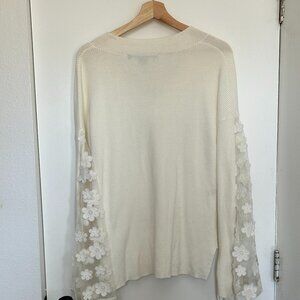 French Connection white cotton sweater with FLORAL TIE SLEEVES - Romantic , XS