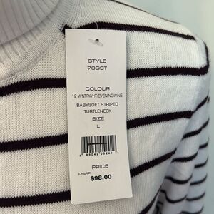 French Connection winter white and wine striped turtleneck sweater Size L New