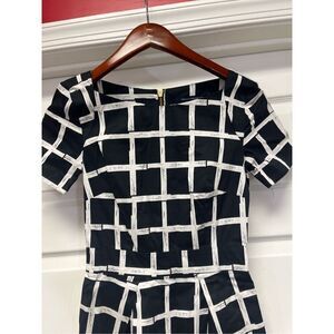 French Connection Black & White Windowpane Back Zip Mini Dress with Pockets Sz 0