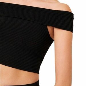 French Connection Odelia Off Shoulder Crop Top, Black, Size Medium, NWT