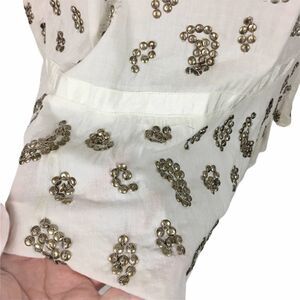 One cluster of beading is missing a couple of beads. Does not take away from this dress