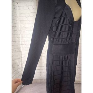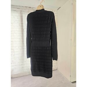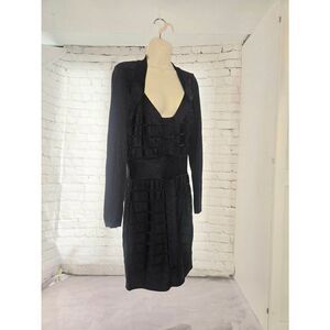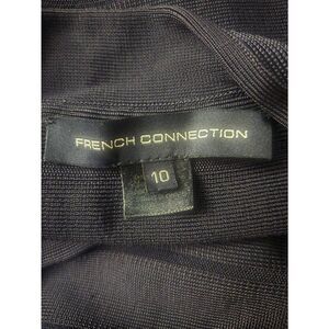 Make a statement at the next party with this French Connection navy dress. The dress is made of a combination of nylon, spandex, and viscose materials with a rayon fabric type. It features a V-neckline, collarless design, and pullover closure. The dress has long fitted sleeves and a sheath style with a knee-length dress length. This dress is perfect for travel, holy communion, party/cocktail, casual, and business occasions. It comes in a solid pattern with no accents and a classic theme. The dress is machine washable.