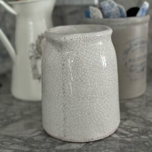 This is a super heavy pitcher with rustic texture and design. Crackled pattern on the glaze is a deliberate design feature which adds to its vintage charm and appearance.