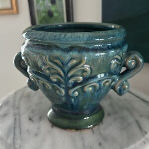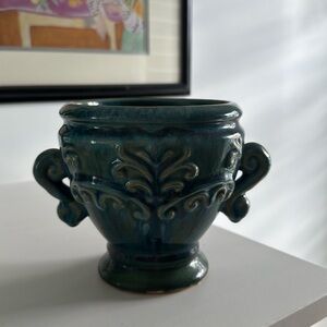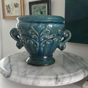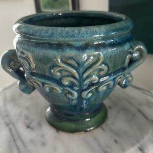 French Country Inspired Turquoise Ceramic Crock Planter