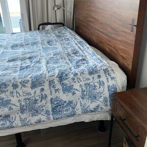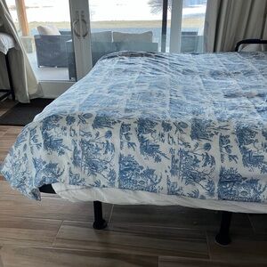 French Country Scenic Toile Design Romantic Cotton Blue White Full Queen Duvet