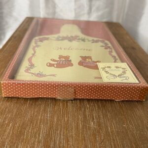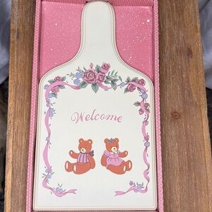 French Country Wooden Wall Decor Bears Welcome Sign 11.5” Ivory Pink Blue READ