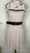The original belt I believe was a satin ribbon. The belt in the pictures is not originally with the dress, but I am adding it for free. The belt has some scratching on it, but can be covered over. With bling or other fabric if desired
