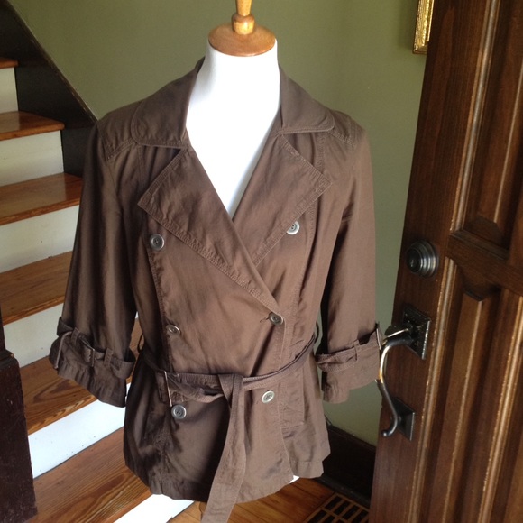 Three quarter sleeves. Button front with belt. 100% Cotton. Shoulder to hem 24 inches