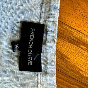 French Curve Linen Tunic Shirt Blue Lightweight Blouse Top