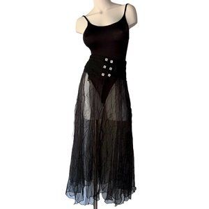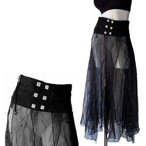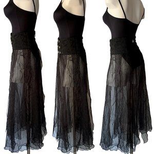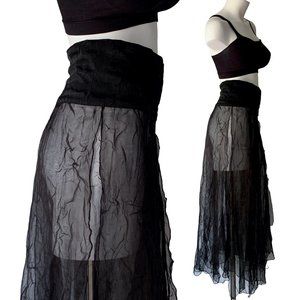 French Designer Biche de Bère vintage tiered/crinkled/pliseé sheer maxi skirt
