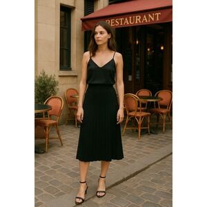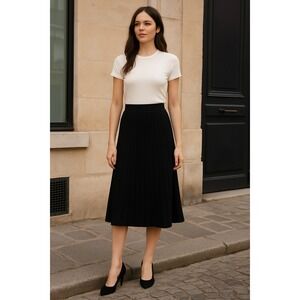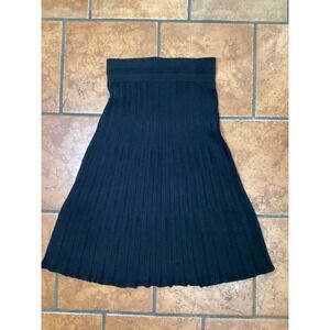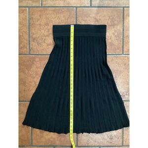 French Designer LeMont St. Michel Black Pleated Knit Midi Skirt XS Parisian Chic